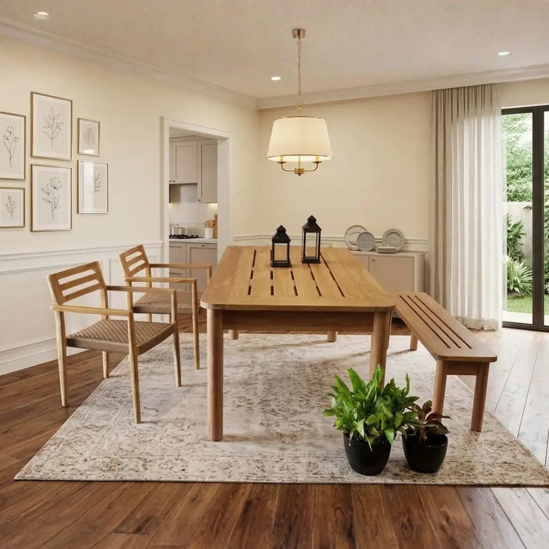 Expertly crafted from solid wood, the Bali Bench embodies timeless elegance and enduring strength. Its rich natural tones and finely detailed craftsmanship bring a refined aesthetic to any dining setting. Designed with versatility in mind, it transitions effortlessly between indoor and outdoor spaces. Elevate your dining experience by pairing it with a matching table and armchairs, creating a harmonious and sophisticated ensemble.
