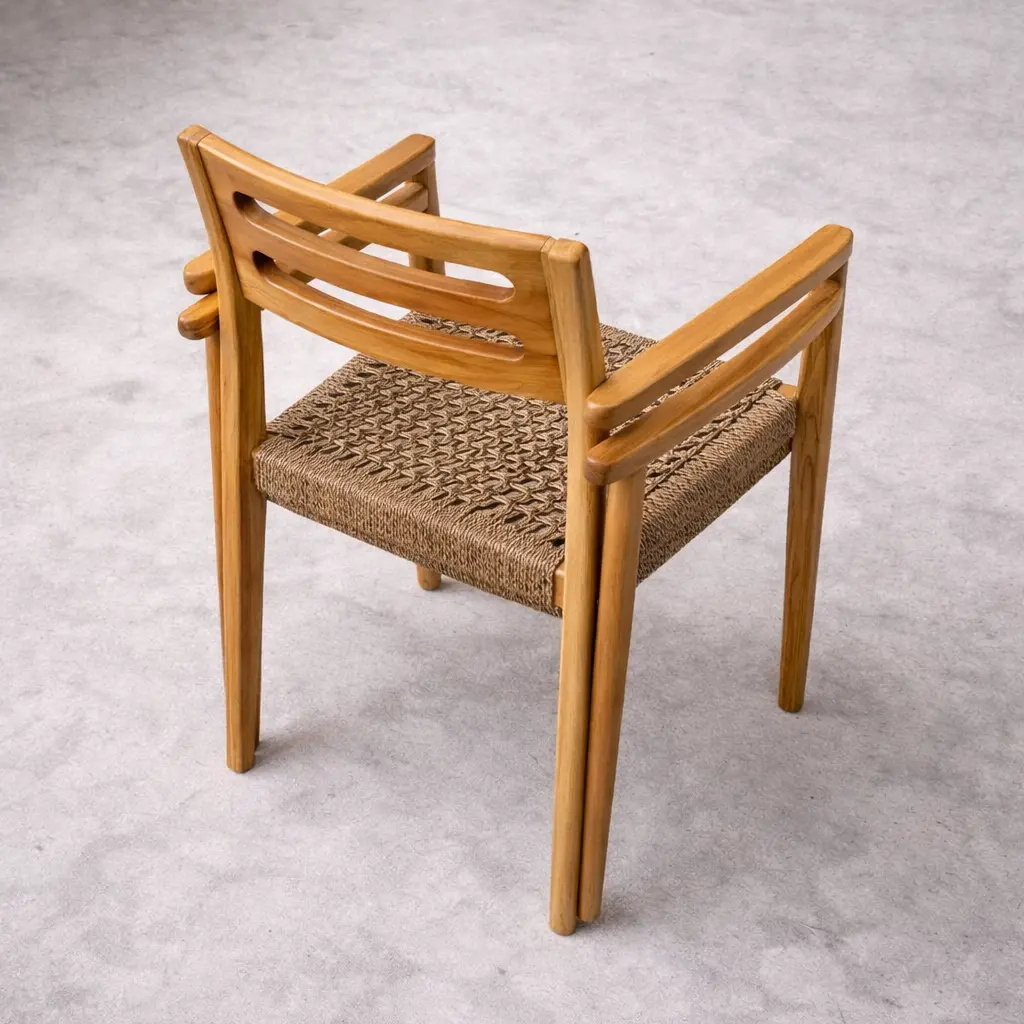 Bali Stacking Chair is a stylish and functional seating piece crafted from high-quality solid wood with a smooth natural finish that highlights the beauty of the wood grain. The chair features a carefully woven natural fiber seat that provides comfortable support while adding a warm, textured look to the design. Its ergonomic structure, including a gently curved backrest and supportive armrests, ensures a pleasant seating experience for everyday use. Designed with practicality in mind, the Bali Stacking Chair can be easily stacked to save space, making it an excellent choice for homes, restaurants, cafes, and hospitality environments. With its clean lines, durable construction, and natural aesthetic, this chair blends seamlessly into various interior styles such as modern, Scandinavian, and tropical-inspired spaces, offering both elegance and functionality in one timeless design.