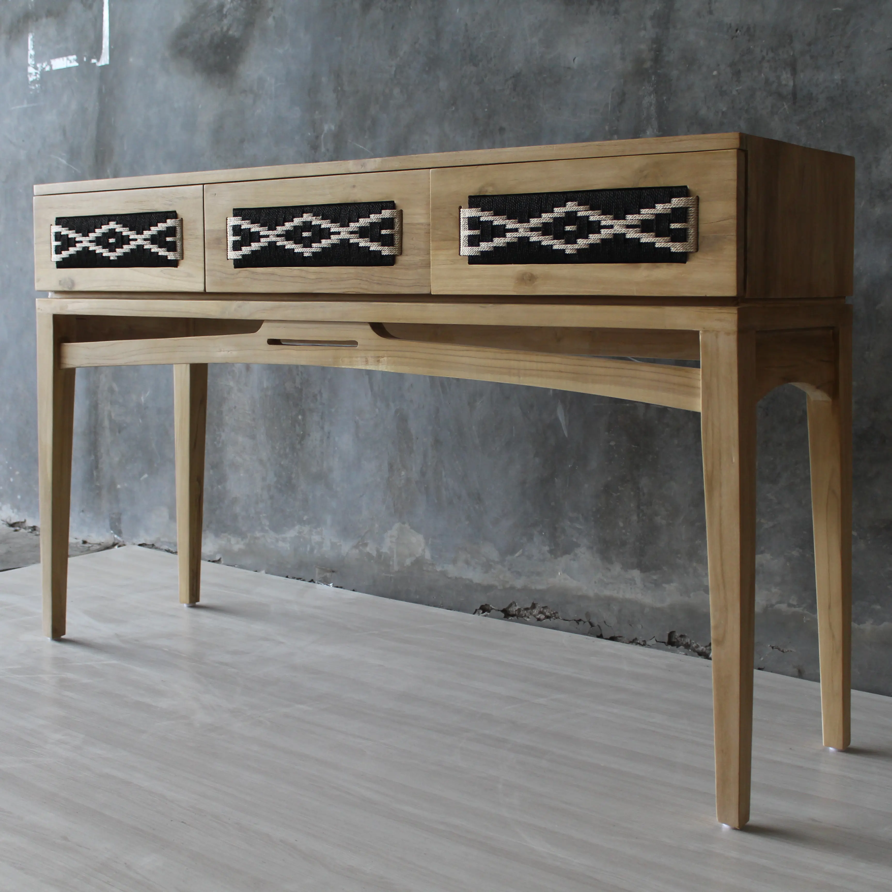 Berlin Console is a versatile piece that functions beautifully as either a console cabinet or a table, making it a perfect addition to your living room or foyer. The intricate detailing on its drawers creates a striking focal point, effortlessly drawing attention. Crafted from warm, natural teak wood, it brings a sense of charm and organic elegance to any space. Style it with your favorite decorative accessories on top to enhance its aesthetic appeal and personalize your interior.