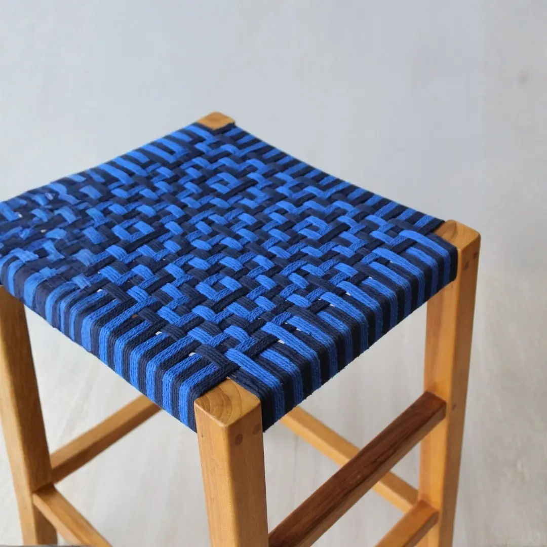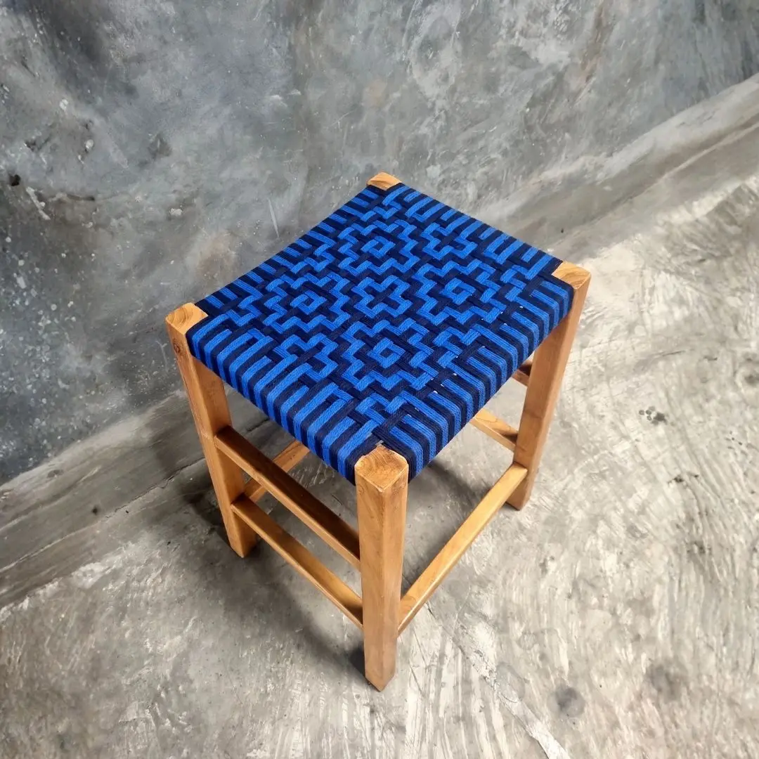 A striking burst of color defines this counter stool, making it one of our standout creations. The seat features a unique rope weaving pattern, adding texture and character that elevate it beyond the ordinary. Supported by a durable teak wood frame in a warm natural tone, this stool brings both style and strength to your dining or bar area—perfect for creating a vibrant yet inviting space.