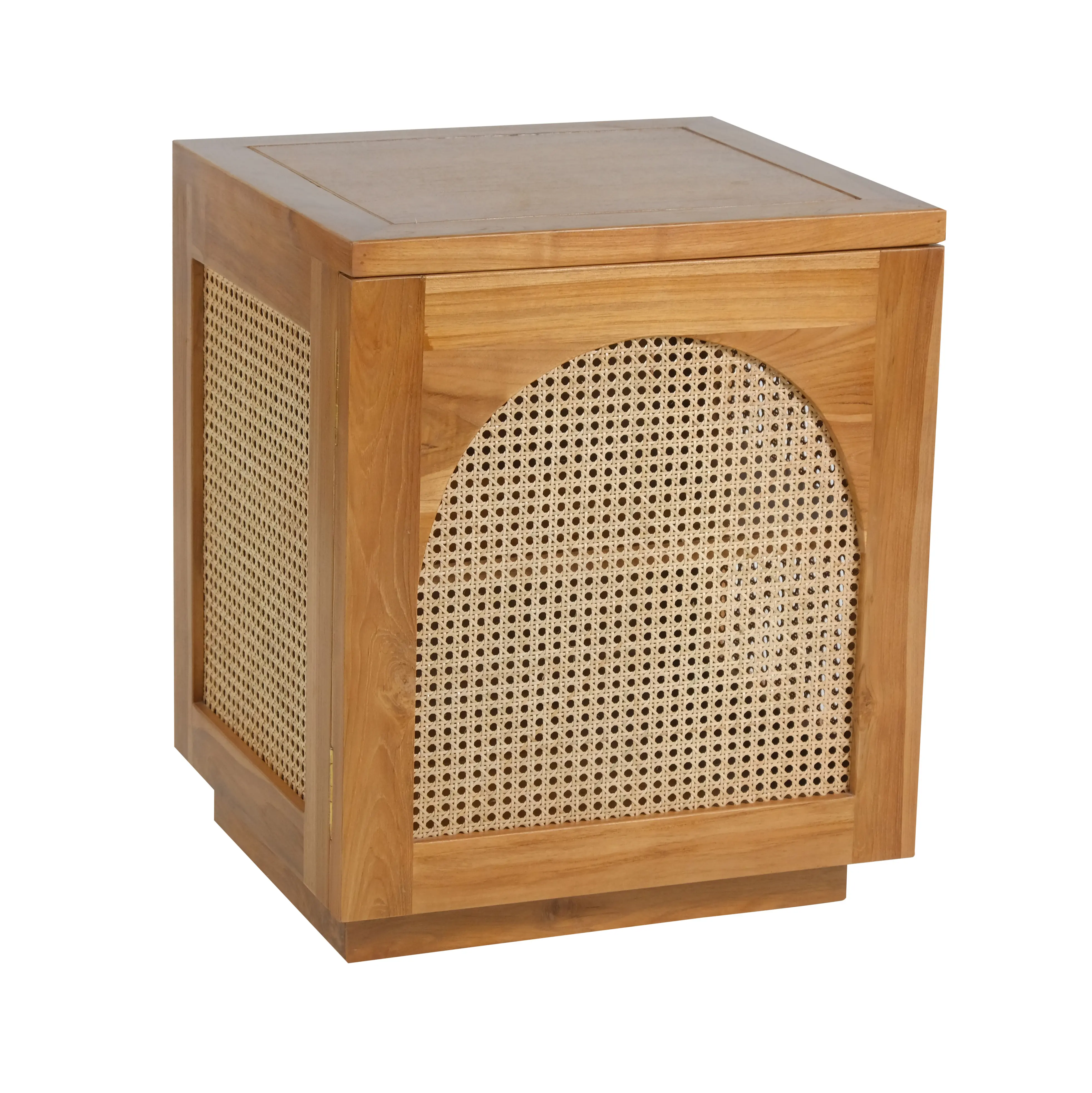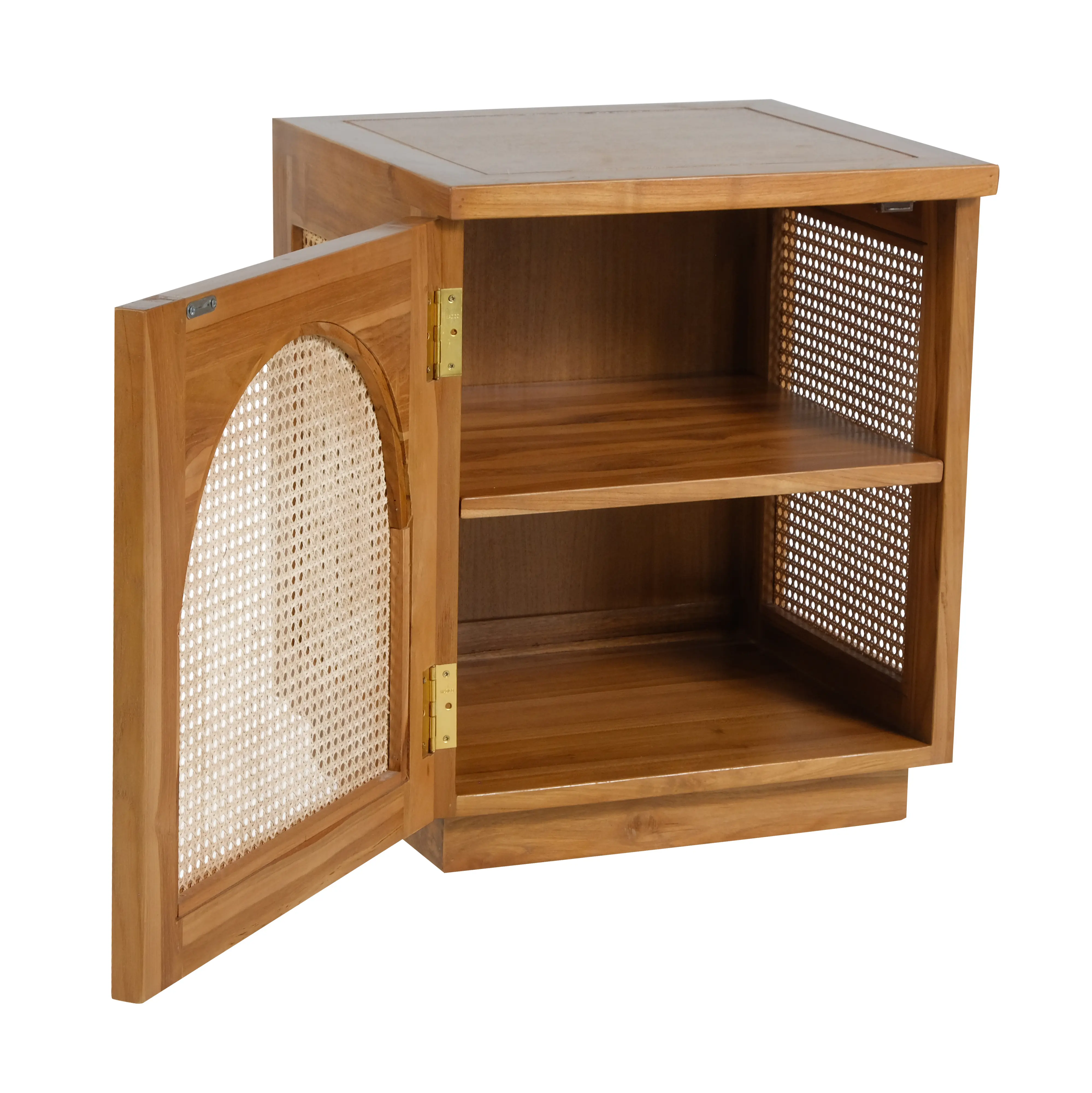 Lulu Nightstand is a perfect blend of functionality and natural beauty. Designed with spacious storage, it keeps your books and essentials neatly within reach, while its smooth top surface serves beautifully as a side table for your bedside lamp or décor. Crafted from solid teak wood and accented with natural rattan weaving, Lulu brings a warm, organic charm that enhances any bedroom with a calm and inviting atmosphere.