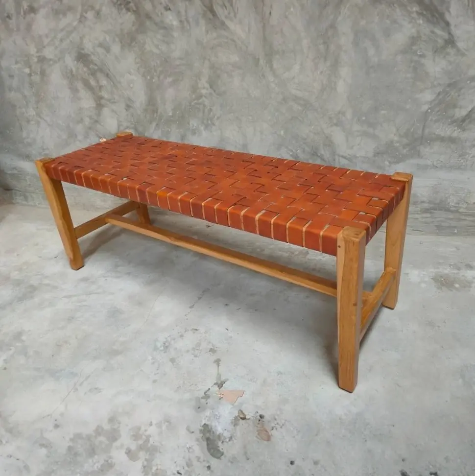 The classic elegance of leather blends seamlessly with the natural tones of teak wood, creating an eclectic piece that enhances your foyer or living room. This bench brings both style and practicality to your home—perfect for comfortable seating or as a functional addition to your shoe area. Versatile in design, it can be placed wherever you need a touch of sophistication and convenience.