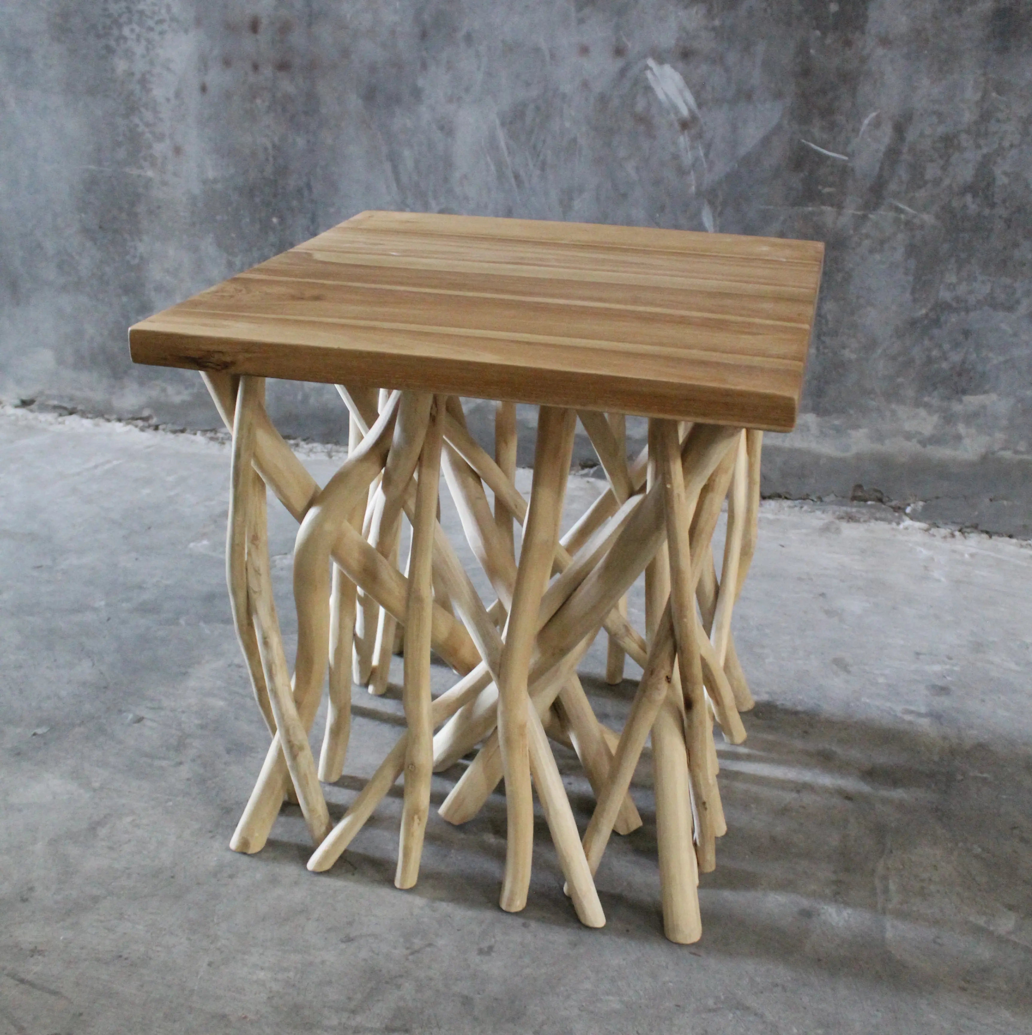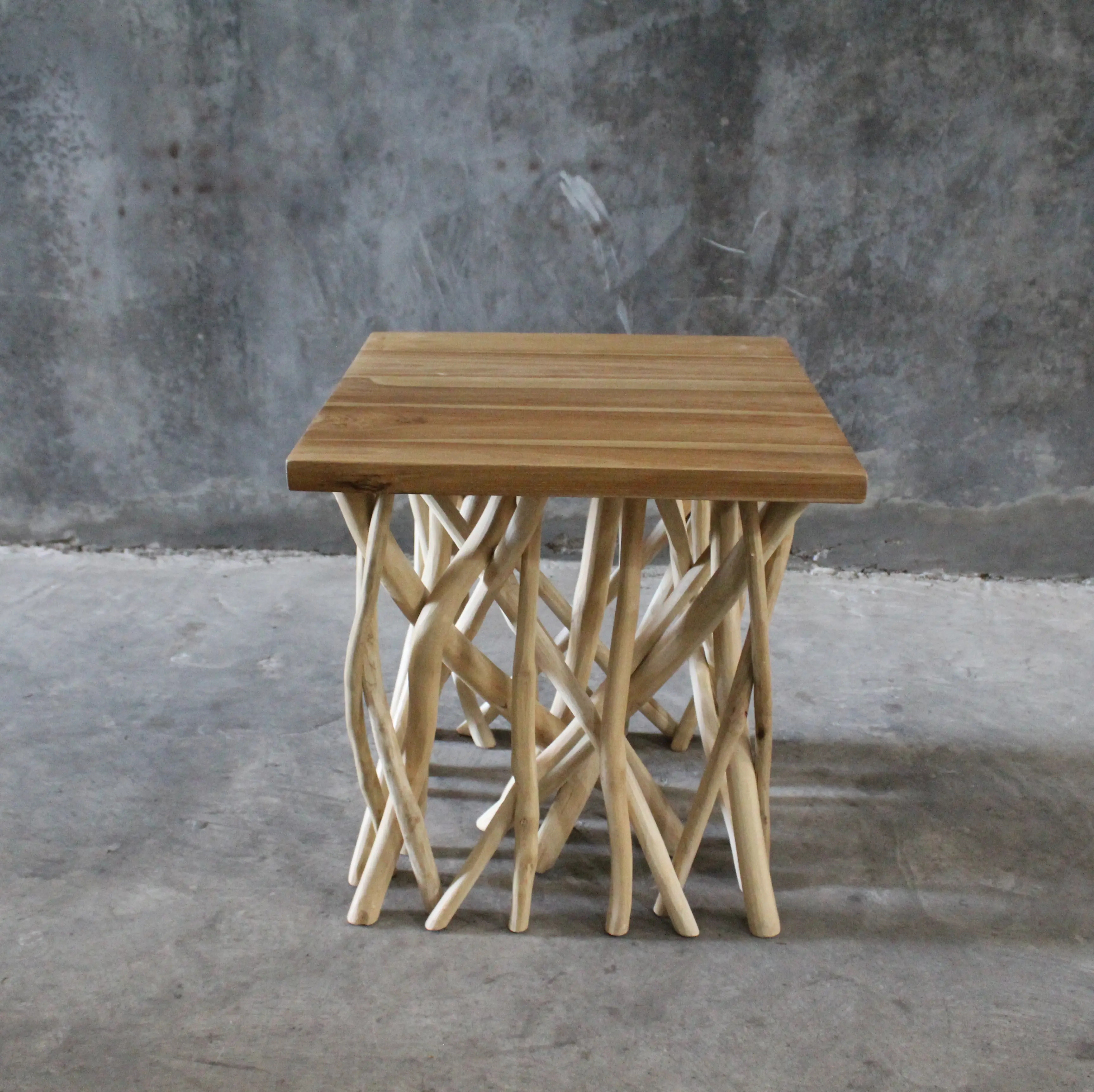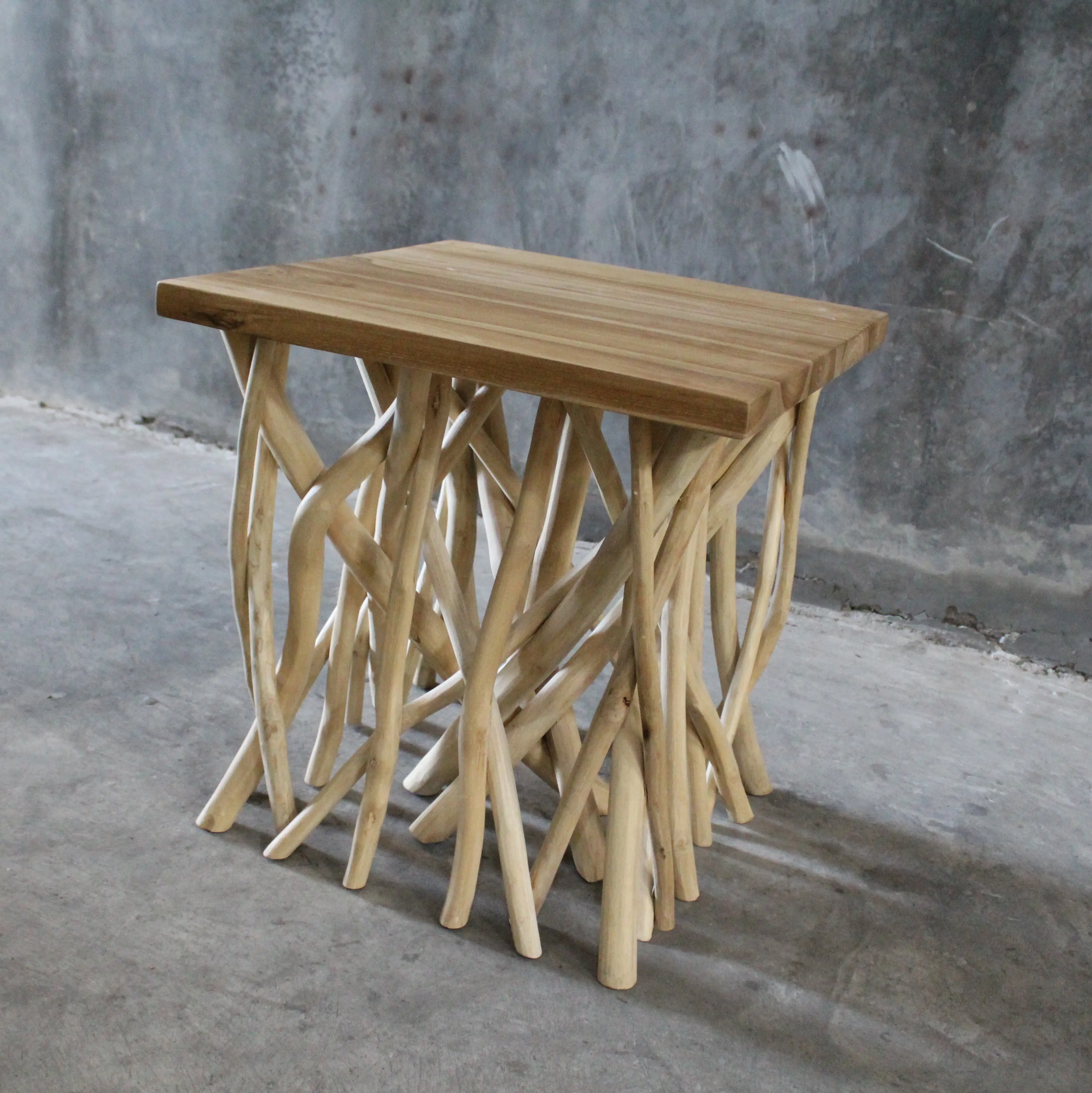 This rustic wood stool showcases a unique natural design crafted from intertwined solid wood branches that form a sturdy and artistic base. The gently curved wooden seat provides comfort while highlighting the natural wood grain and organic texture. Each piece has its own character, making every stool slightly unique. Perfect for rustic, tropical, or natural-style interiors, this stool combines functionality with handcrafted charm, creating a warm and authentic accent for living spaces, patios, or decorative seating areas.
