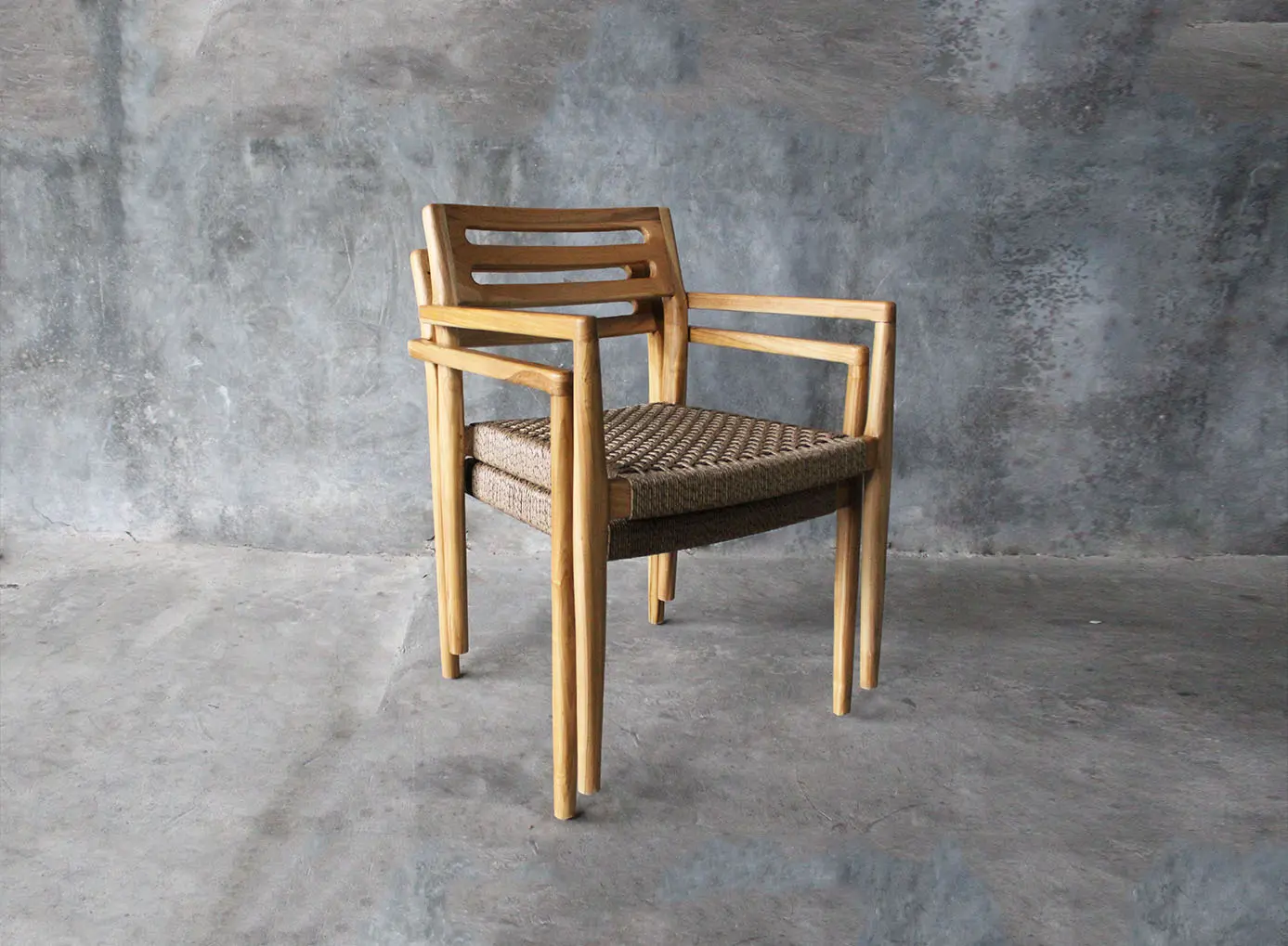 Bali Stacking Chair is a stylish and functional seating piece crafted from high-quality solid wood with a smooth natural finish that highlights the beauty of the wood grain. The chair features a carefully woven natural fiber seat that provides comfortable support while adding a warm, textured look to the design. Its ergonomic structure, including a gently curved backrest and supportive armrests, ensures a pleasant seating experience for everyday use. Designed with practicality in mind, the Bali Stacking Chair can be easily stacked to save space, making it an excellent choice for homes, restaurants, cafes, and hospitality environments. With its clean lines, durable construction, and natural aesthetic, this chair blends seamlessly into various interior styles such as modern, Scandinavian, and tropical-inspired spaces, offering both elegance and functionality in one timeless design.