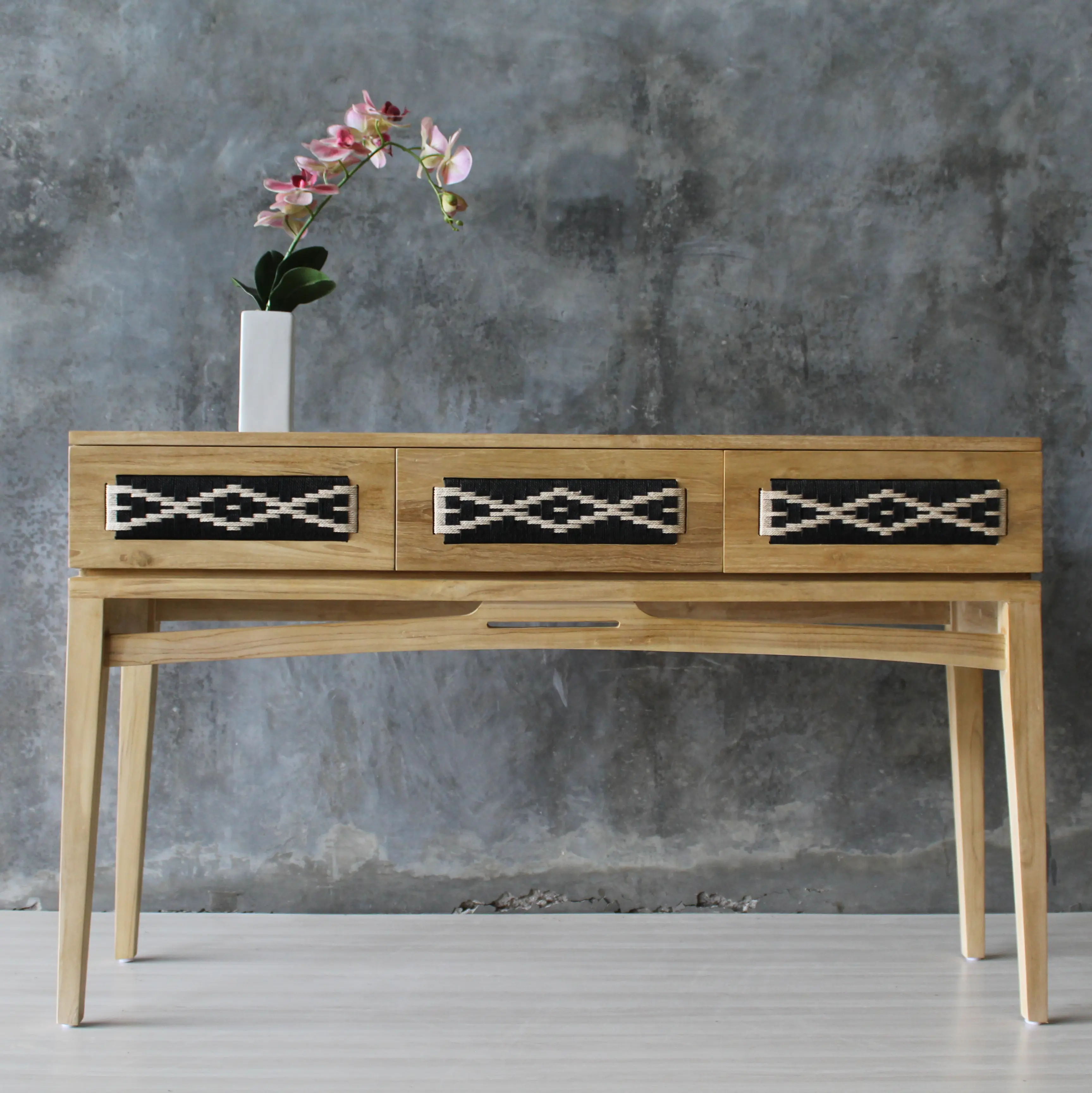 Berlin Console is a versatile piece that functions beautifully as either a console cabinet or a table, making it a perfect addition to your living room or foyer. The intricate detailing on its drawers creates a striking focal point, effortlessly drawing attention. Crafted from warm, natural teak wood, it brings a sense of charm and organic elegance to any space. Style it with your favorite decorative accessories on top to enhance its aesthetic appeal and personalize your interior.