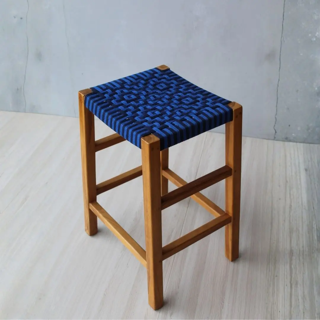 A striking burst of color defines this counter stool, making it one of our standout creations. The seat features a unique rope weaving pattern, adding texture and character that elevate it beyond the ordinary. Supported by a durable teak wood frame in a warm natural tone, this stool brings both style and strength to your dining or bar area—perfect for creating a vibrant yet inviting space.