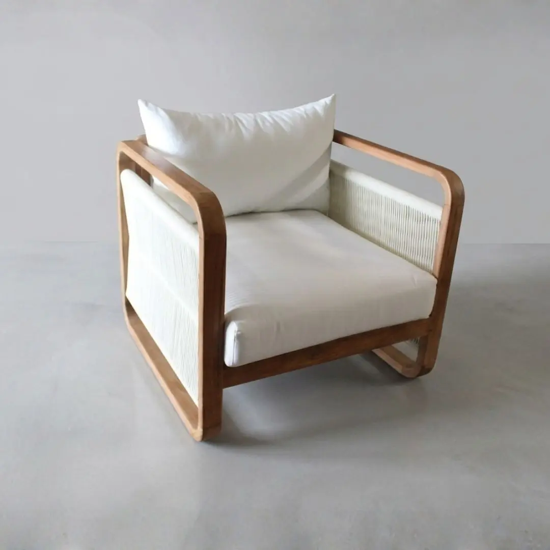 Eleanor Living Set – Premium Teak Wood Lounge Furniture for Export The Eleanor Living Set is a beautifully crafted lounge furniture collection made from high-quality solid teak wood, designed for durability and timeless elegance. This set includes a two-seater sofa, two comfortable armchairs, and a matching wooden coffee table, making it a perfect solution for both indoor and outdoor living spaces. Featuring a smooth curved design and natural teak finish, this furniture set highlights the beauty of Indonesian craftsmanship. The soft, high-density white cushions provide exceptional comfort while maintaining a clean, modern aesthetic suitable for contemporary interiors. Ideal for living rooms, patios, resorts, villas, and hospitality projects, the Eleanor Living Set is built to withstand daily use while offering long-lasting performance. The use of premium teak wood ensures resistance to weather, moisture, and wear, making it an excellent choice for export-quality furniture. We specialize in manufacturing and exporting high-quality teak furniture from Indonesia, offering customization options to meet your project or wholesale needs.
