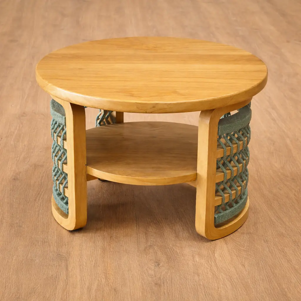 Inara Table combines functionality with style—crafted from solid teak wood with a natural warm color finish, it features an open shelf design and vibrant multicolor rope weaving. A perfect accent piece to elevate any space.