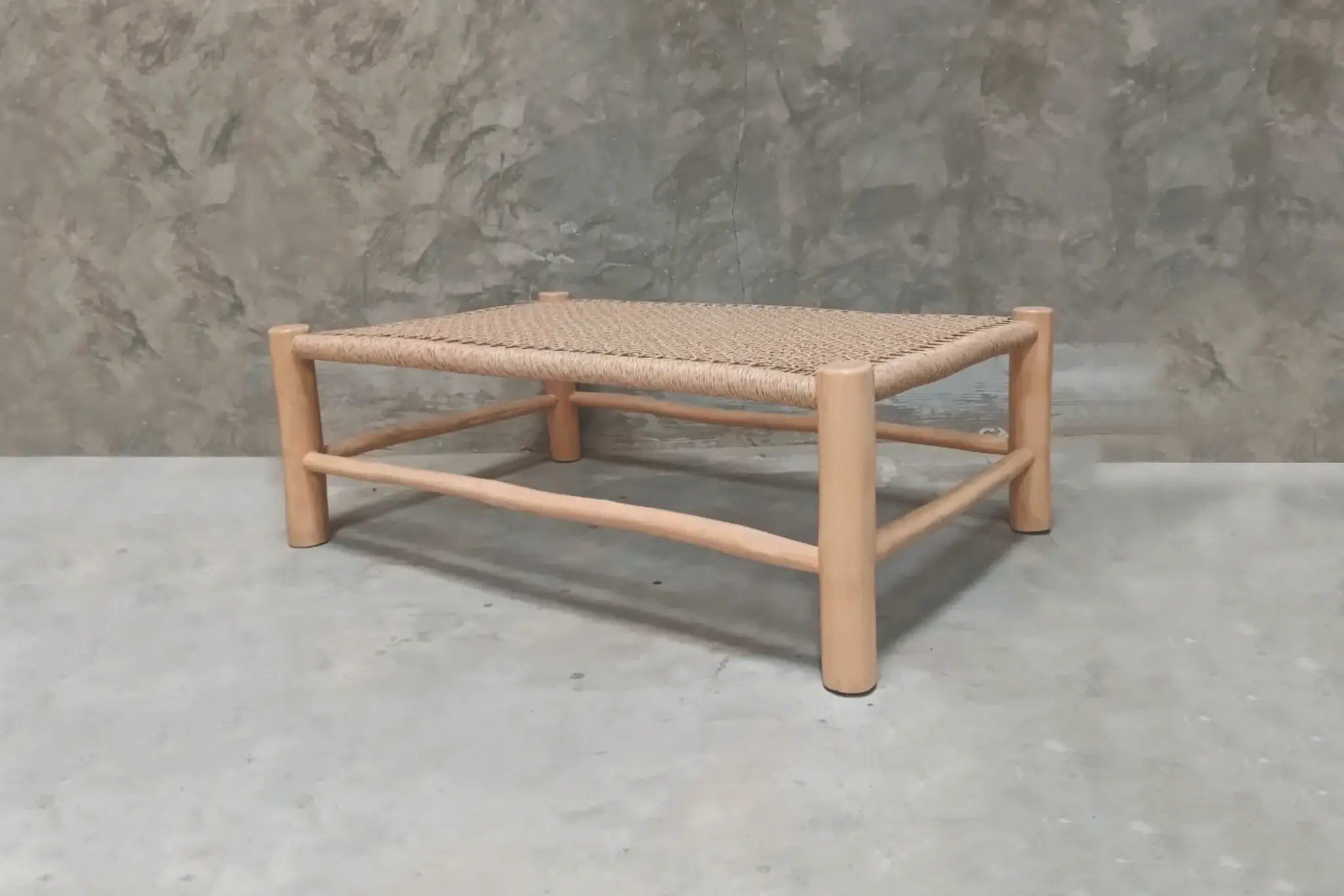 Teak Coffee Table Indonesia – Rope Woven Table | Handmade Export Furniture This handcrafted coffee table blends minimalist design with natural charm, creating a warm and modern centerpiece for any space. Featuring clean lines and sturdy cylindrical legs, the table offers a balanced aesthetic that fits perfectly in living rooms, lounges, or hospitality seating areas. The woven rope surface adds texture and visual interest, enhancing its contemporary yet organic appeal. Crafted from premium solid teak wood sourced from Indonesia, this coffee table ensures exceptional strength, stability, and long-lasting performance. The tabletop is enhanced with handwoven rope, showcasing authentic artisan craftsmanship while providing a durable and functional surface. Combining high-quality teak wood and sustainable materials, this piece is both durable and eco-friendly, suitable for indoor and semi-outdoor use. As a trusted Indonesian Furniture Manufacturer, we specialize in producing export quality furniture for global B2B markets. This coffee table is ideal for wholesalers, retailers, interior designers, and hospitality projects seeking wholesale furniture with a unique handcrafted touch. We support bulk orders, custom designs, and worldwide shipping.