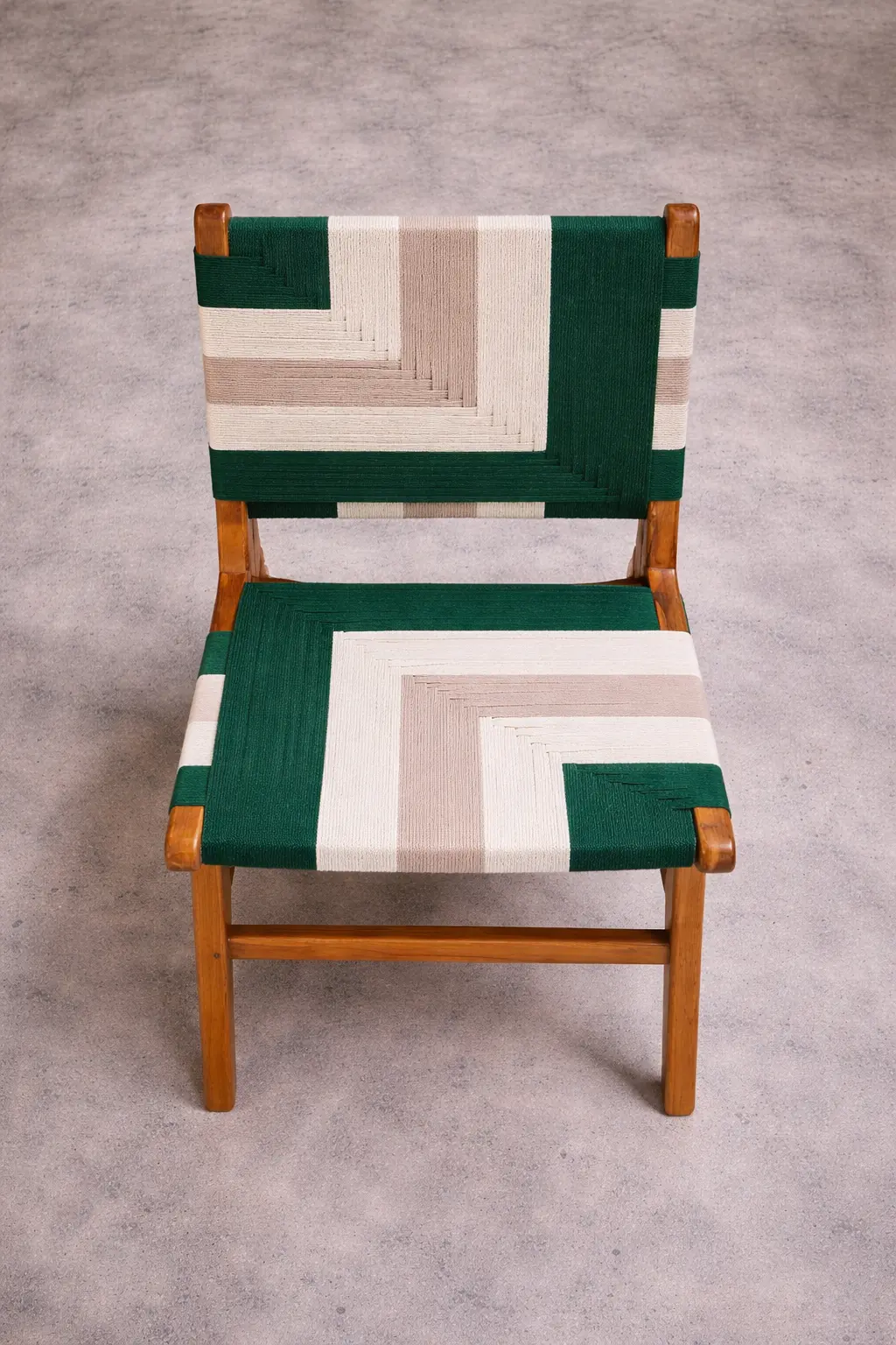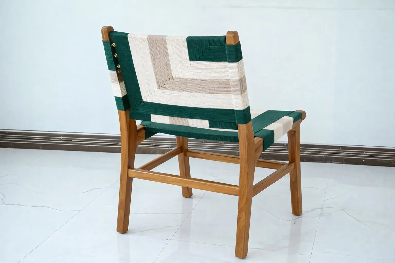 Nuansa Dining Chair blends contemporary design with artisanal craftsmanship, featuring a sturdy solid wood frame paired with a beautifully handwoven rope seat and backrest. The distinctive geometric weaving pattern creates a bold visual statement while providing comfortable support. Its clean lines and natural materials bring warmth and character to dining spaces, making it suitable for modern homes, restaurants, or hospitality interiors. Durable, stylish, and uniquely crafted, the Nuansa Dining Chair adds a refined yet vibrant touch to any dining setting.