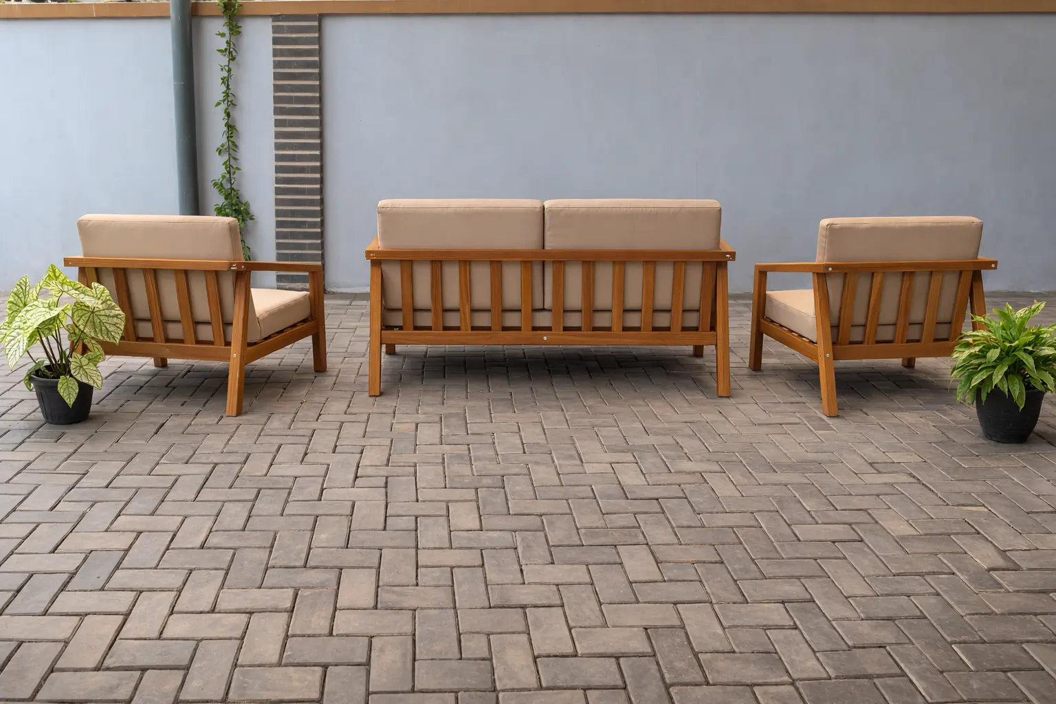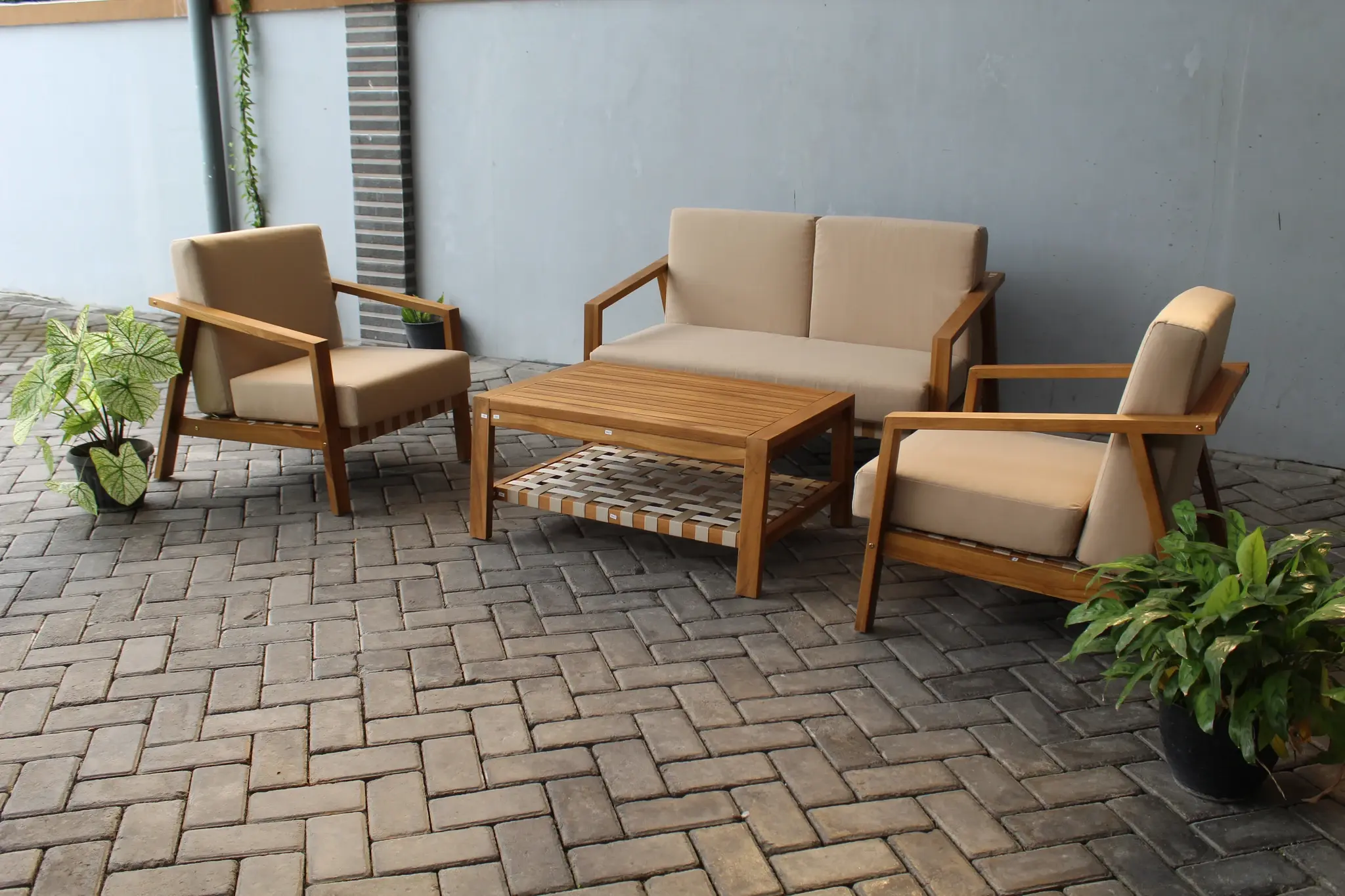 Teak Outdoor Lounge Set Indonesia – Modern Patio Furniture | Handmade Export Furniture This outdoor lounge set presents a perfect combination of modern elegance, comfort, and natural beauty. Designed with clean lines and a minimalist silhouette, it creates a relaxing and stylish atmosphere for patios, gardens, and outdoor living spaces. The warm teak finish paired with soft beige cushions delivers a refined yet inviting look, ideal for both residential and hospitality environments. Crafted from premium solid teak wood sourced from Indonesia, this set ensures exceptional durability, strength, and resistance to outdoor conditions. The high-quality cushions provide superior comfort, while the sturdy wooden frame guarantees long-term performance. Built with sustainable materials and expert craftsmanship, this furniture set is both durable and eco-friendly, making it suitable for continuous outdoor use. As a trusted Indonesian Furniture Manufacturer, we specialize in producing export quality furniture for global B2B markets. This lounge set is perfect for wholesalers, retailers, interior designers, and hospitality projects seeking reliable wholesale furniture with modern outdoor appeal. We support bulk orders, custom specifications, and worldwide shipping to meet international standards.