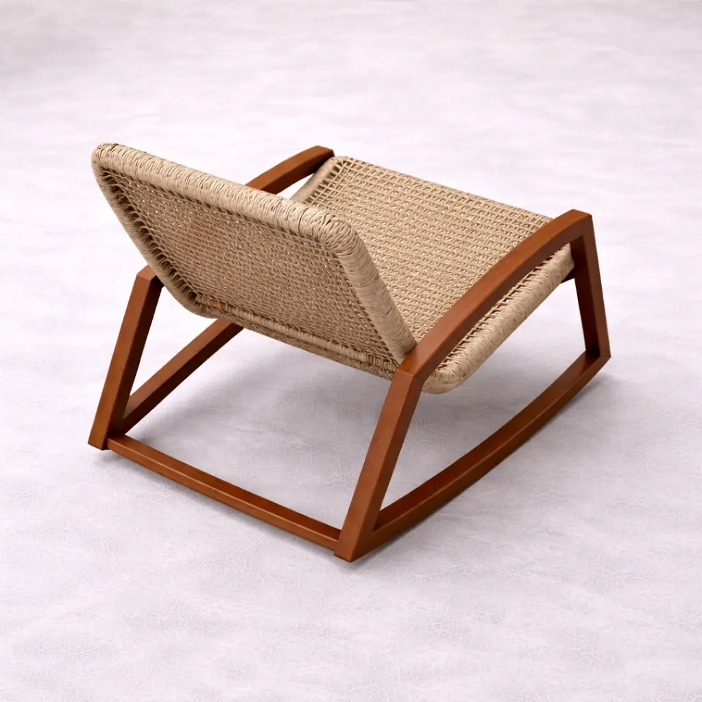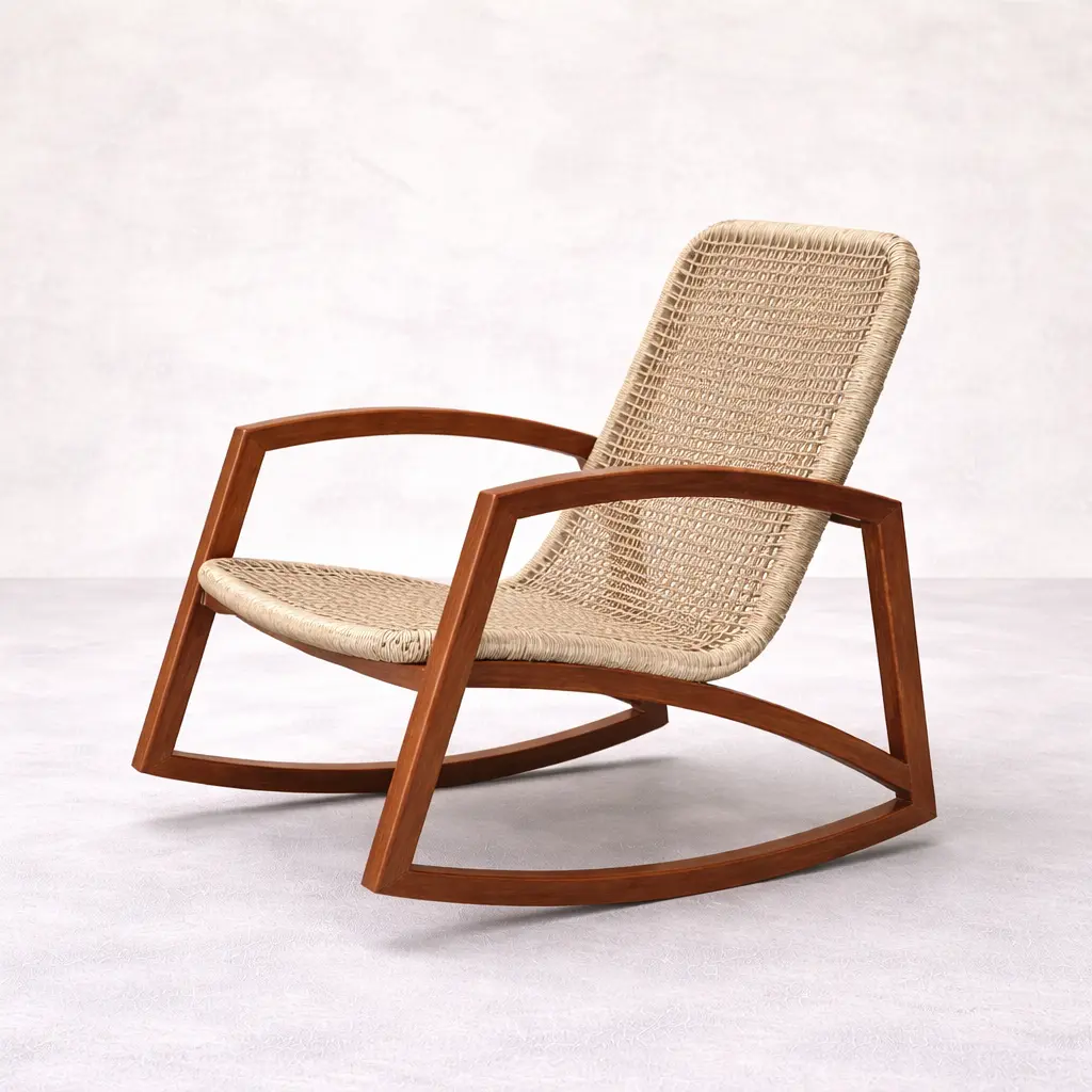 Teak Rocking Chair Indonesia – Handmade Wooden Lounge Chair for Export The Teak Rocking Chair is a perfect fusion of comfort, elegance, and timeless craftsmanship. Designed with a beautifully curved solid wood frame and a smooth rocking base, this chair creates a relaxing experience ideal for unwinding after a long day. Its minimalist yet warm aesthetic makes it a perfect addition to modern living rooms, cozy reading corners, or upscale hospitality spaces. Expertly crafted from premium solid teak wood sourced from Indonesia, this rocking chair ensures exceptional strength, durability, and long-lasting performance. The seat and backrest are carefully handwoven using natural fibers, showcasing authentic artisan craftsmanship. This combination of handwoven details and sustainable teak wood highlights both durability and eco-friendly value, making it a reliable choice for long-term use in both residential and commercial settings. As a professional Indonesian Furniture Manufacturer, we produce export quality furniture tailored for global B2B markets. This product is highly suitable for wholesalers, interior designers, retailers, and hospitality projects looking for wholesale furniture with consistent quality and customizable options. We support bulk production, custom specifications, and worldwide shipping.