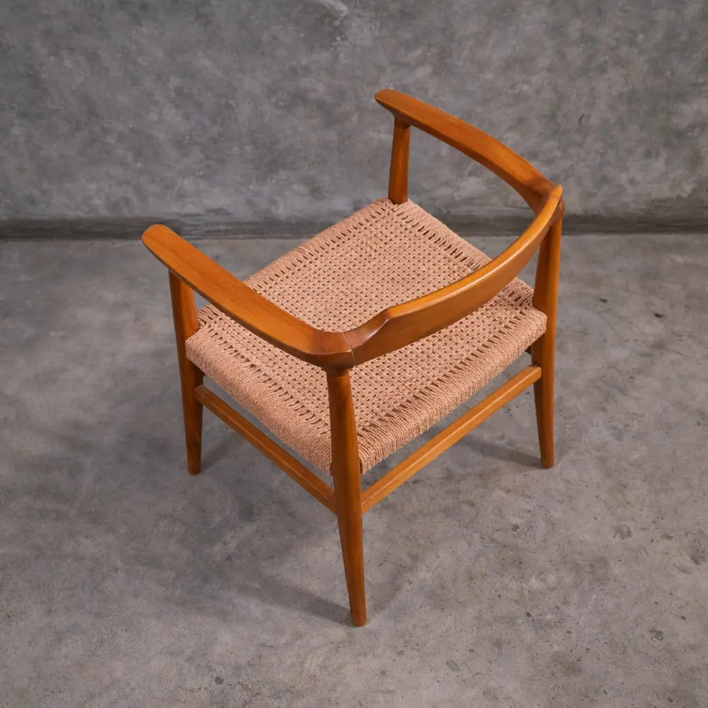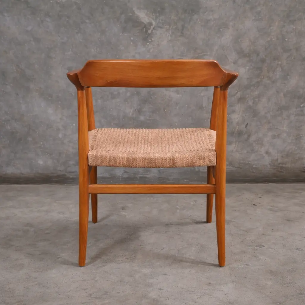 Teak Arm Chair Indonesia – Russel Arm Chair | Handmade Export Furniture The Russel Arm Chair is a refined combination of timeless design and modern craftsmanship. Inspired by mid-century aesthetics, this chair features a minimalist silhouette with gracefully curved armrests, creating a sophisticated yet inviting look. Its elegant form makes it a perfect addition to dining areas, living rooms, or hospitality interiors seeking both comfort and style. Expertly crafted from premium solid teak wood sourced from Indonesia, the Russel Arm Chair showcases the natural beauty and strength of high-quality teak wood. The smooth warm finish enhances the wood grain, while the handwoven seat adds a natural texture and comfortable seating experience. Built with attention to detail and sustainable materials, this chair is both durable and eco-friendly, ensuring long-lasting performance. As a trusted Indonesian Furniture Manufacturer, we produce export quality furniture tailored for global B2B markets. The Russel Arm Chair is ideal for wholesalers, retailers, interior designers, and hospitality projects seeking reliable wholesale furniture with a timeless design. We support bulk orders, custom finishes, and worldwide shipping to meet international standards.